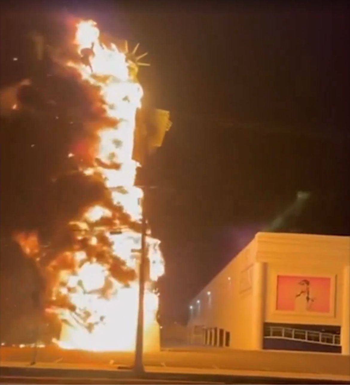 A Estátua da Liberdade que marca a fachada da loja Havan, na Avenida Honorato Viana, foi destruída por um incêndio na madrugada desta terça-feira (23). O fogo consumiu toda a estrutura da réplica, restando apenas a armação metálica. pic.twitter.com/XVuyHB2IZm