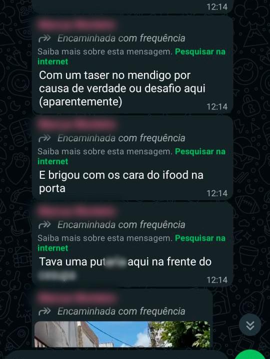 Nos videos divulgados em grupos de mensagens, um jovem apontado como estudante ds instituição ataca um homem em situação de rua com um taser, chamado popularmente de arma de choque, próximo a entrada do local.