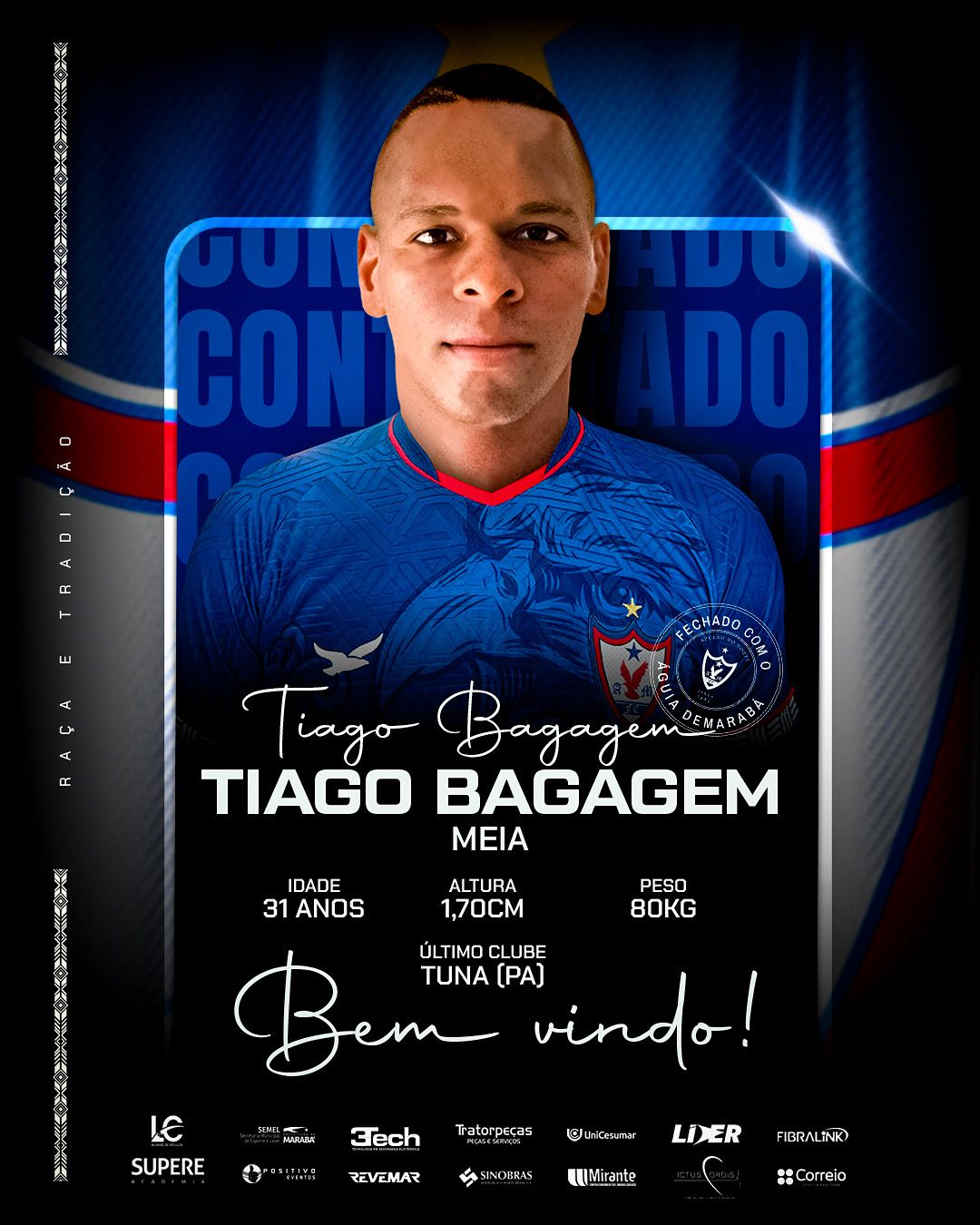O Águia de Marabá segue o processo de montagem do elenco para 2026. E a novidade da vez é o meio-campista Tiago Bagagem, que disputou a temporada deste ano com a camisa da Tuna Luso.