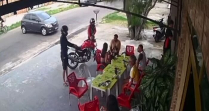 No início da tarde de domingo (23), uma família foi surpreendida por dois homens em uma motocicleta enquanto se preparava para o tradicional almoço do Círio de Nossa Senhora das Graças, na rua Padre Júlio Maria, conhecida como Terceira Rua de Icoaraci, em Belém. A ação foi rápida e interrompeu a confraternização que acontecia em frente à residência da família.