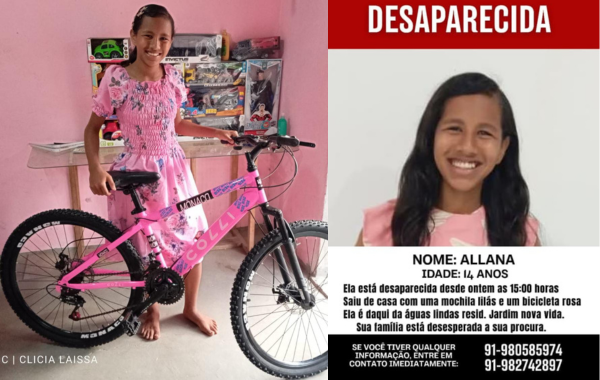 Segundo os pais, a jovem saiu de casa por volta das 15h, de bicicleta, pra ir até a casa de uma amiga — sem autorização da família. No entanto, ela não chegou ao destino. No momento do desaparecimento, Allana estava em uma bicicleta rosa e carregava uma mochila roxa.