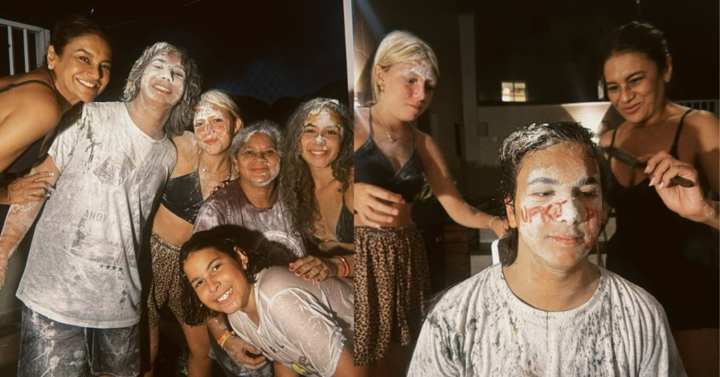 O filho da atriz paraense Dira Paes, Inácio, foi aprovado no curso de Ciências Sociais da Universidade Federal do Rio de Janeiro e celebrou a conquista de um jeito bem paraense. A comemoração teve trote com ovos, farinha de trigo e até marchinha do cantor Pinduca, referência do carimbó.