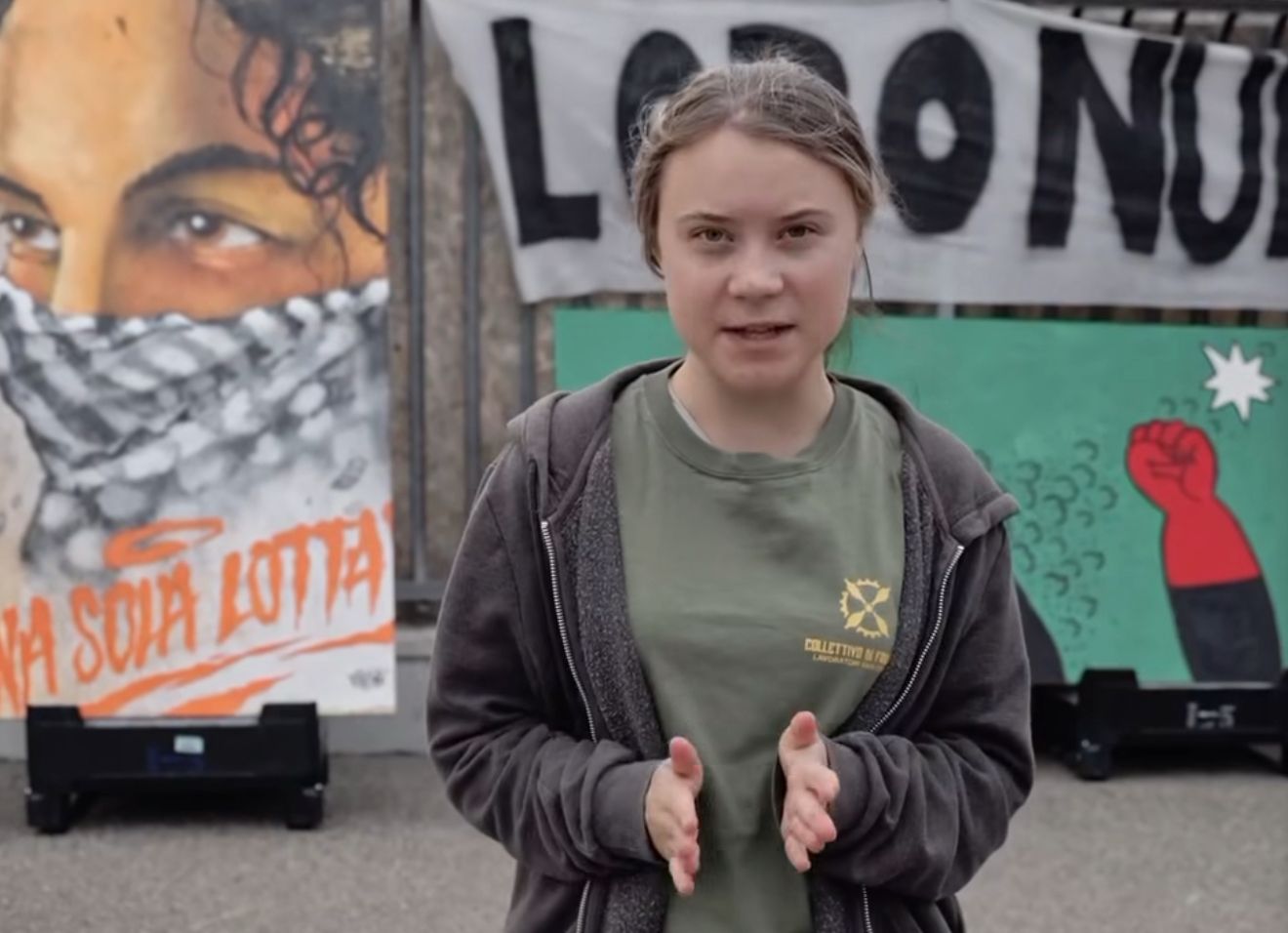 Recentemente, Thunberg participou da flotilha humanitária Global Sumud, que tentava furar o bloqueio naval de Israel para levar ajuda humanitária à Faixa de Gaza. A embarcação foi detida pelas forças israelenses e a ativista foi deportada junto a outras 171 pessoas.