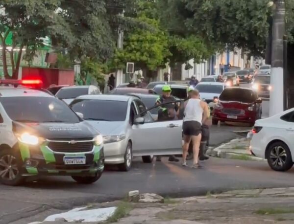 Homem de 40 anos foi preso após agredir agentes de trânsito da Secretaria Municipal de Segurança, Ordem Pública e Mobilidade (Segbel), na tarde desta quinta-feira (17), em frente ao Hospital Amazônia, na avenida 9 de Janeiro. A confusão foi registrada em vídeo por testemunhas e circula nas redes sociais, mostrando o momento em que o suspeito parte para cima dos agentes, chuta o retrovisor da viatura oficial e provoca tumulto no local.