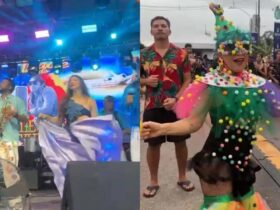 As imagens mostram o momento em que um agente se dirige ao folião para questionar ele. Na sequência, outros policiais se aproximam e o homem é conduzido. Em outro registro que circulou nas plataformas digitais, ele aparece com as mãos posicionadas para trás, ao lado de dois militares.