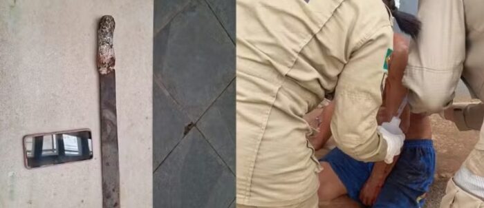 Ao chegar ao endereço, os policiais encontraram a vítima com diversos ferimentos provocados por objeto cortante, atingindo o braço esquerdo, as costas e a cabeça. O ferimento mais grave foi no braço, onde havia intenso sangramento.