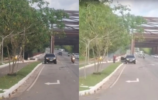 No vídeo, é possível ver o homem do lado de fora do carro após jogar fora diversos entulhos no canteiro da pista. Em seguida, ele ateia fogo no lixo, entra de volta no carro e sai do local tranquilamente.