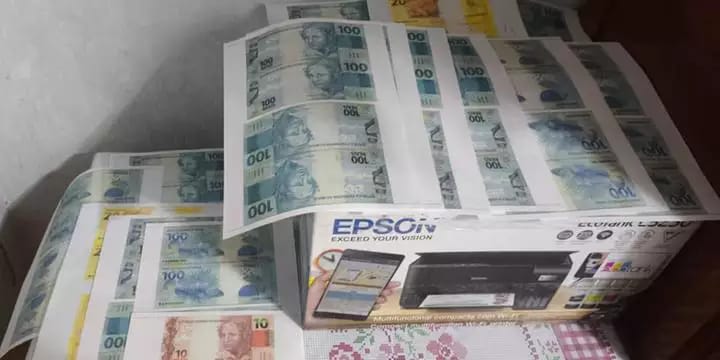 No endereço do suspeito, a Polícia Militar encontrou 15 folhas de papel vergê que já estavam impressas com cédulas falsas. Os valores reproduzidos nas folhas incluíam notas de R$ 100, R$ 20 e R$ 10, além da própria impressora utilizada para o ato ilícito.