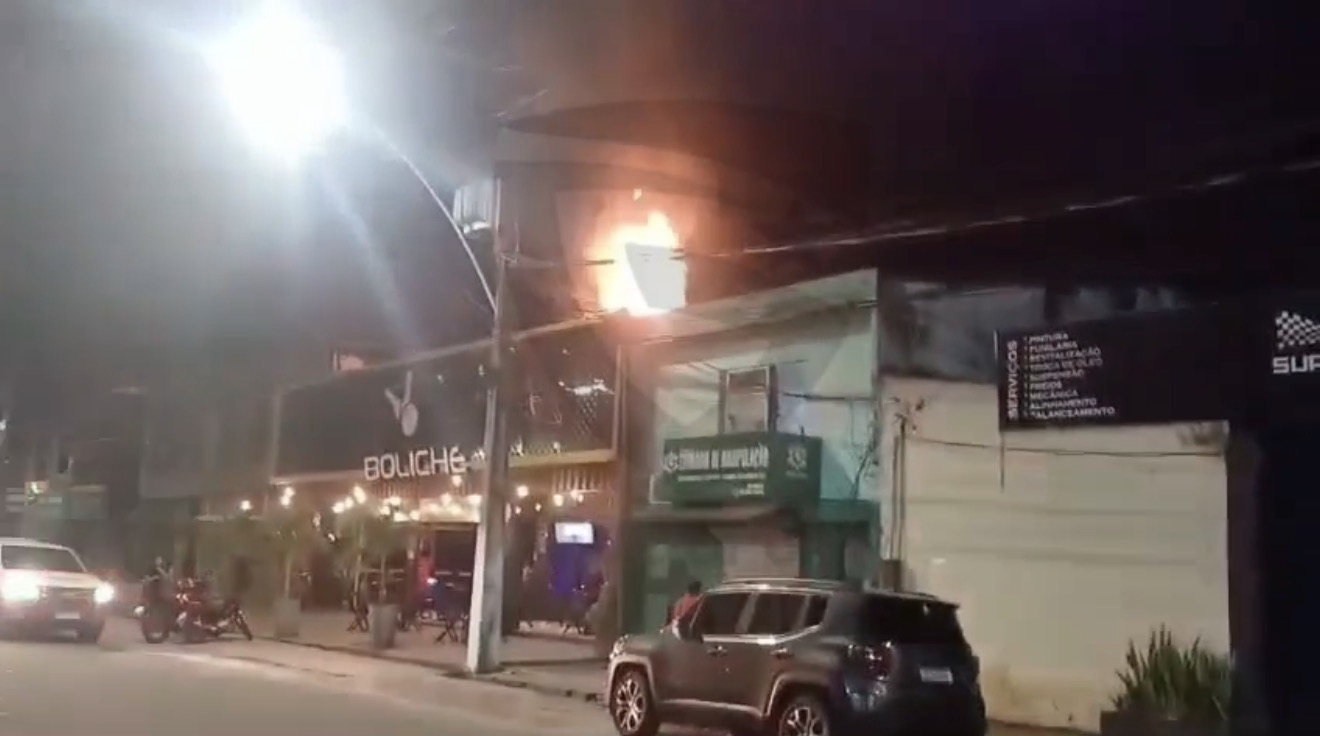 Imagens registradas por testemunhas mostram a dimensão das chamas, que atingiram o interior da cozinha do local.