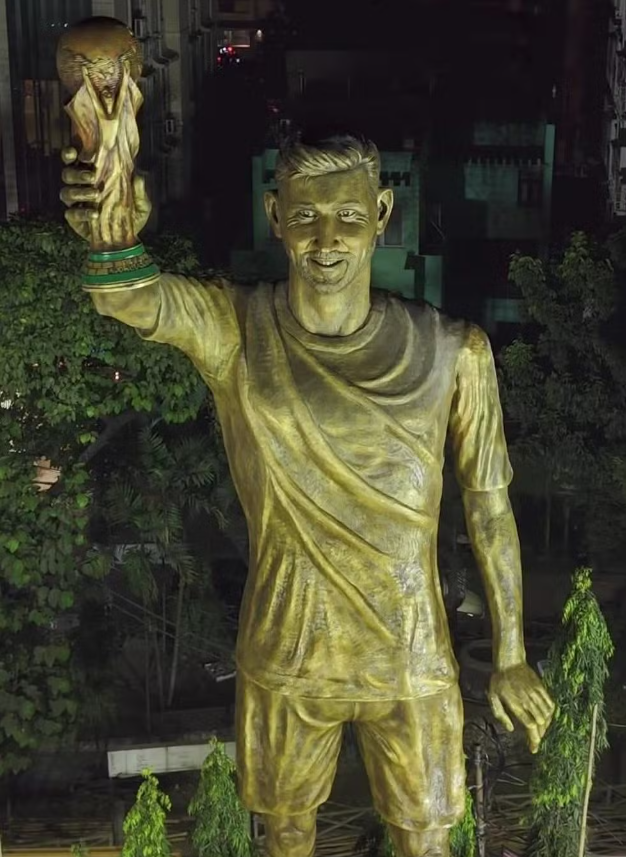 A admiração dos indianos por Lionel Messi ganhará, neste sábado, 13, uma nova dimensão. Calcutá vai inaugurar uma estátua monumental do camisa 10 argentino no bairro de Lake Town, peça que chega a 21 metros de altura e passa a ser considerada a maior do mundo dedicada ao jogador. A obra, concluída em cerca de 40 dias por artesãos locais, retrata o momento em que Messi ergue a taça da Copa do Mundo.
