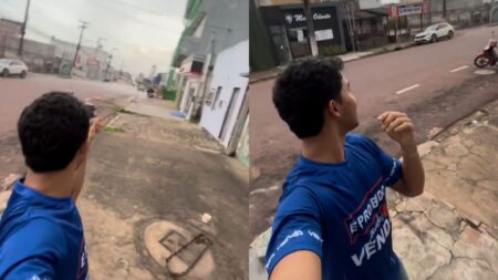 O influenciador João Silva (@ujoao_silva) viralizou nas redes sociais ao compartilhar o momento em que caíam “chuvas em faixa”, em Itaituba, no sudoeste do Pará. No vídeo, João aparece surpreso por ver parte da rua recebendo a água da chuva, mas poucos metros antes fazia sol. “Gente, olha isso: chove lá, mas não chove aqui”, … Continue lendo Influenciador viraliza ao registrar ‘chuva em faixas’ em Itaituba: “Gente, chove lá mas não chove aqui”
