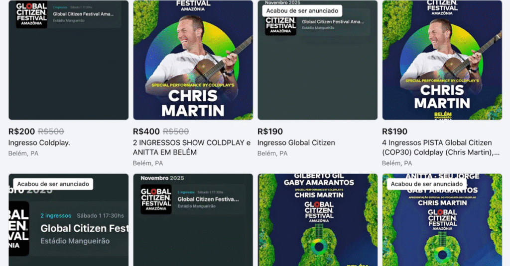 Ingressos gratuitos do Global Citizen em Belém são revendidos ilegalmente por até R$ 1 mil