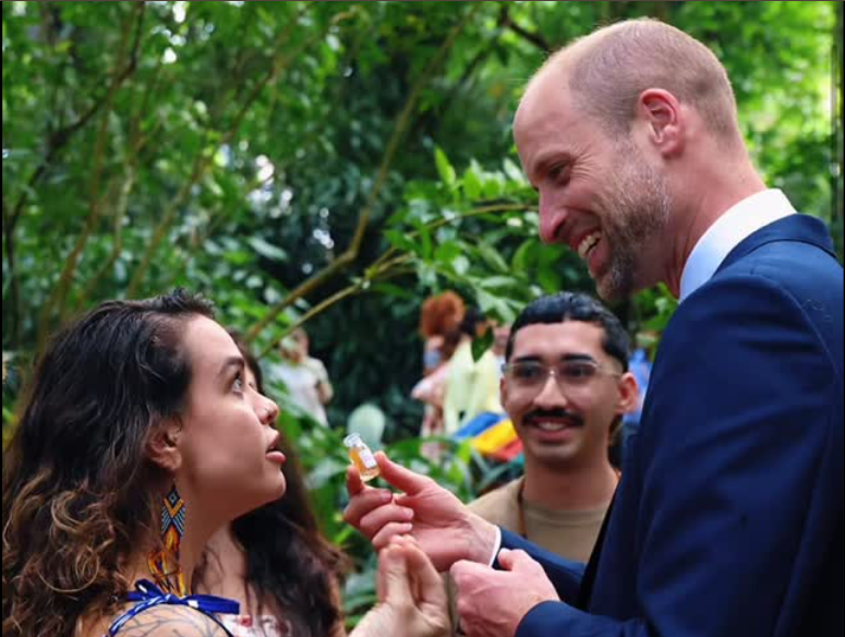 Um gesto inusitado marcou a visita do príncipe William ao Museu Paraense Emílio Goeldi, em Belém, durante a Cúpula dos Líderes da COP30. A ativista Karla Braga surpreendeu o público ao presentear o herdeiro do trono britânico com um pequeno frasco de perfume. O momento, registrado em vídeo por jovens participantes do encontro, repercutiu nas redes sociais pela forma descontraída e simbólica de diálogo com o representante da realeza.