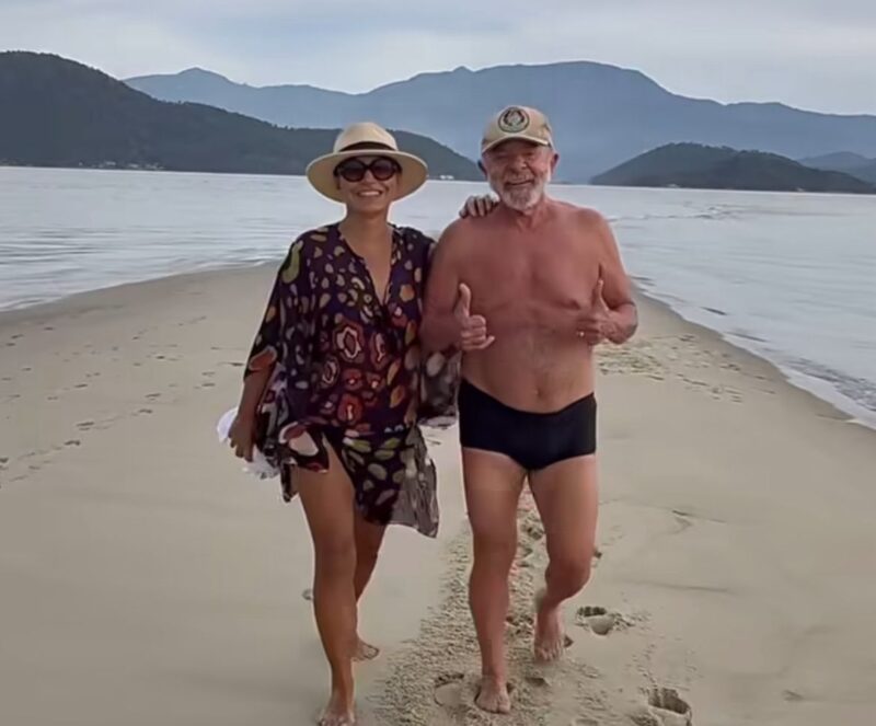 A primeira-dama Janja da Silva divulgou nas redes sociais um vídeo gravado na praia da Restinga da Marambaia, no Rio de Janeiro, onde aparece ao lado do presidente Luiz Inácio Lula da Silva (PT) durante o período de descanso do casal no recesso de fim de ano.