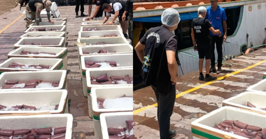 A carga estava sendo transportada em duas embarcações vindas de Codajás, no Amazonas. Durante a abordagem, também foram encontradas cerca de mil sacas de açaí em caroço. Após verificação, o fruto foi liberado mediante apresentação de nota fiscal, enquanto a polpa foi retida por não possuir selo de inspeção, registro sanitário ou comprovação de origem.