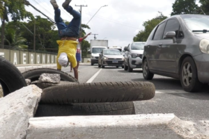 Uma cena inusitada marcou uma manifestação realizada nesta terça-feira (20), no bairro da Marambaia, em Belém. Durante o ato, um homem chamou a atenção ao dançar de forma descontraída em meio ao protesto. A mobilização reuniu moradores da região, que interditaram parcialmente a Avenida Pedro Álvares Cabral como forma de pressionar o poder público para … Continue lendo Manifestante chama atenção com dança divertida durante protesto na Marambaia