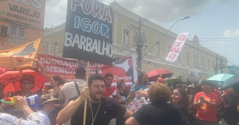 Manifestantes protestam contra gestão de Igor Normando durante evento de aniversário de Belém