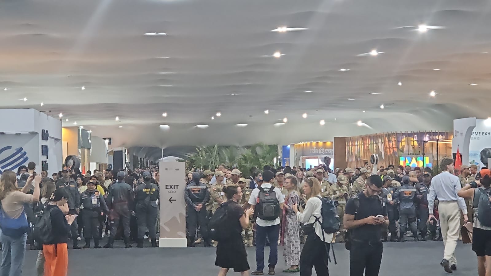 A situação levou as forças de segurança a improvisarem barreiras com mesas e cadeiras para impedir a entrada na área controlada da conferência. O bloqueio visou garantir o controle de acesso e a continuidade da programação em um dos pontos mais sensíveis do evento.