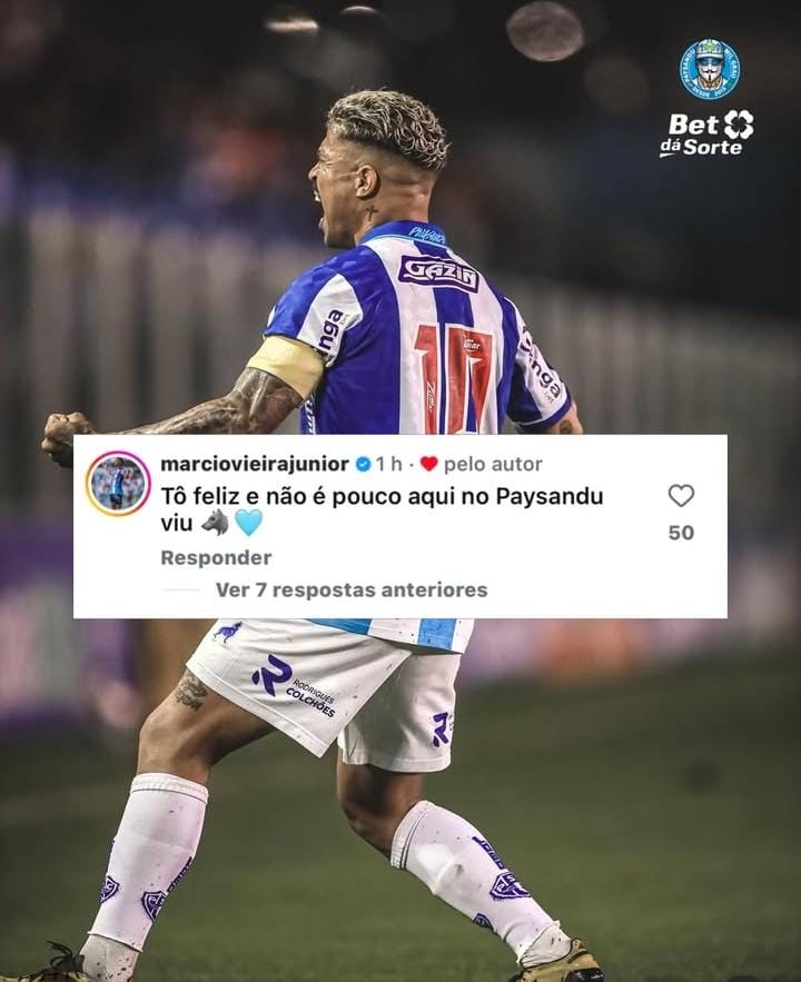 Um dos principais nomes do Paysandu na temporada, o meia Marcinho voltou a chamar atenção fora de campo. Após rumores nas redes digitais sobre um possível interesse de clubes da Série B do Campeonato Brasileiro, o jogador respondeu diretamente a uma publicação no Instagram e demonstrou satisfação em permanecer no Papão.