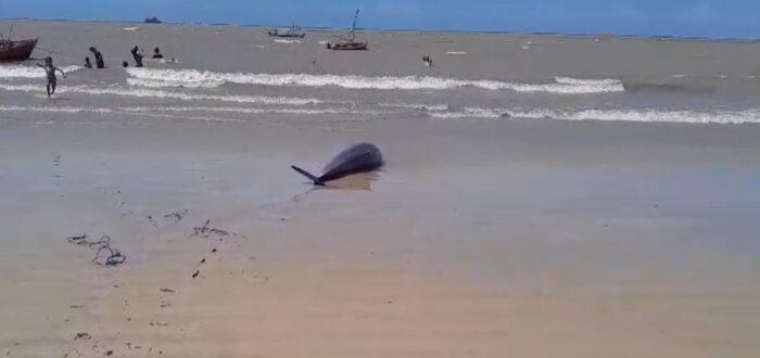 Um golfinho foi encontrado sem vida na manhã desta quinta-feira (8) na praia do Humaitá, no município de Colares, no nordeste do Pará. O animal foi localizado por moradores que circulavam pela área e acionaram a Defesa Civil para verificar a situação.