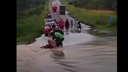 Motociclista é arrastado pela força da água na BR 010, em Irituia