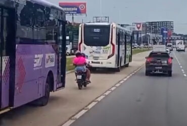 Um motociclista foi flagrado na manhã desta sexta-feira (13) circulando de forma irregular pela faixa exclusiva do BRT Metropolitano de Belém, na BR-316, em trecho localizado no município de Ananindeua. A situação chamou atenção pelo risco, já que o condutor trafegava pelo corredor destinado apenas aos ônibus, levando ainda um passageiro na garupa. Durante o … Continue lendo Motociclista é flagrado trafegando em faixa exclusiva do BRT na BR-316, em Ananindeua