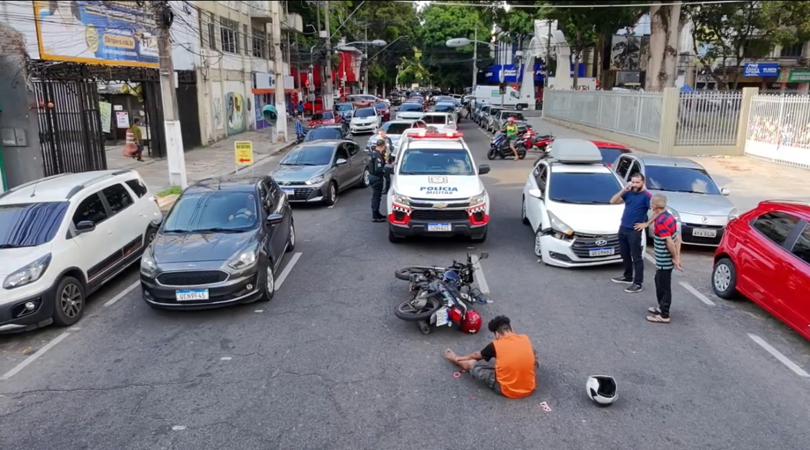 A colisão entre um carro de passeio e uma motocicleta deixou um homem ferido na avenida Generalíssimo, em Belém, nesta quarta-feira, 3. Nas imagens, é possível ver o motociclista caído no asfalto. Ele foi atendido por uma equipe de ambulância que chegou poucos minutos depois.