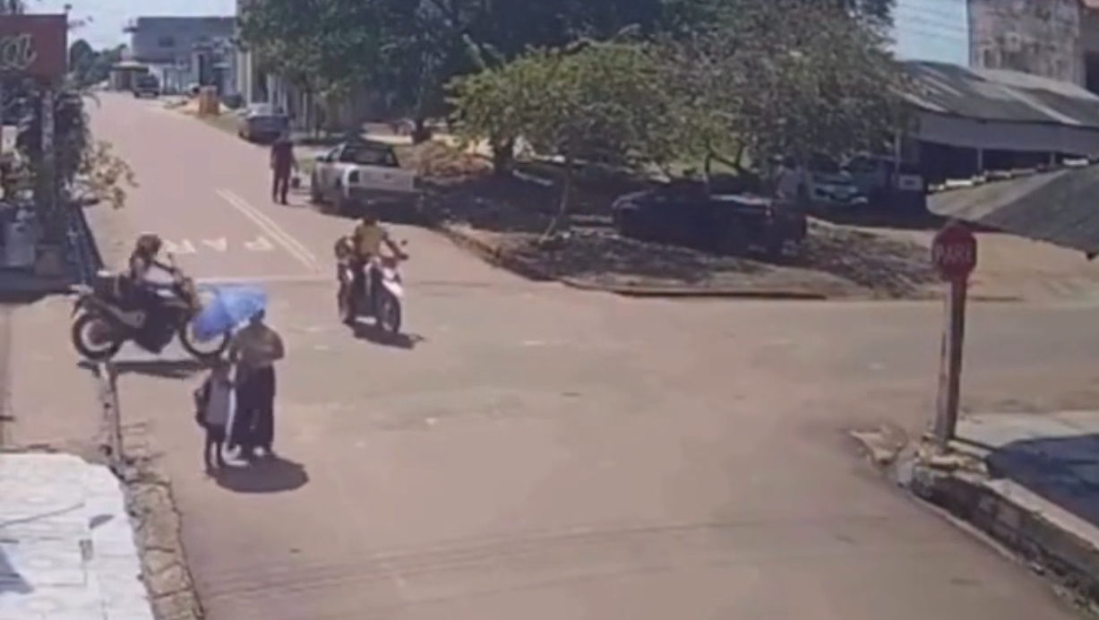 Nas imagens, registradas por uma câmera de vigilância, é possível ver que uma das vítimas do acidente avança a faixa de “pare”, mas logo em seguida é atingida pelo outro motociclista, que seguia na pista principal com a moto em alta velocidade. Também é possível ver que, por pouco, uma mulher que havia buscado o filho na escola não foi atingida.