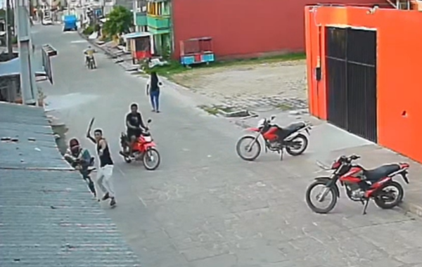 O ataque ocorreu por volta das 6h40, na rua Hugo Carlos Sabóia, em frente a um bar. Nas imagens, o mototaxista aparece sentado em sua motocicleta quando o agressor chega em outra moto, acompanhado de um homem. O suspeito desce do veículo, saca um facão da cintura e inicia a série de golpes contra a vítima.