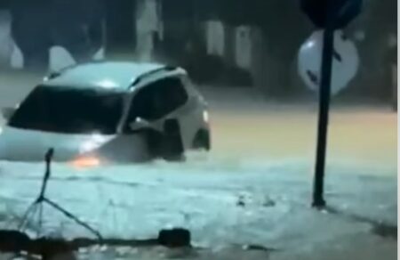 Mulher abandona carro após veículo ser arrastado por enxurrada em Santarém