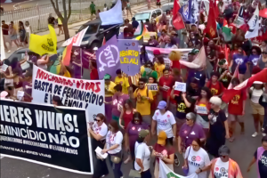 Mulheres caminham em Belém e exigem políticas para frear feminicídios