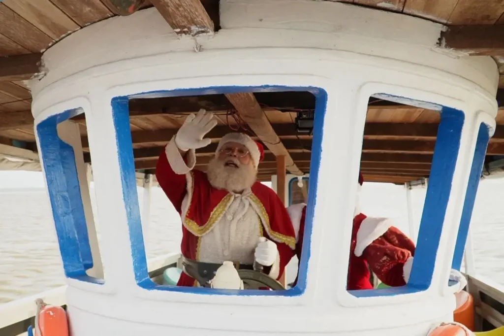 O Papai Noel chegou a Belém pelo rio, desembarcou na Escadinha e seguiu em caravana por diversas ruas até o Parque da Cidade, onde foi recebido com festa.