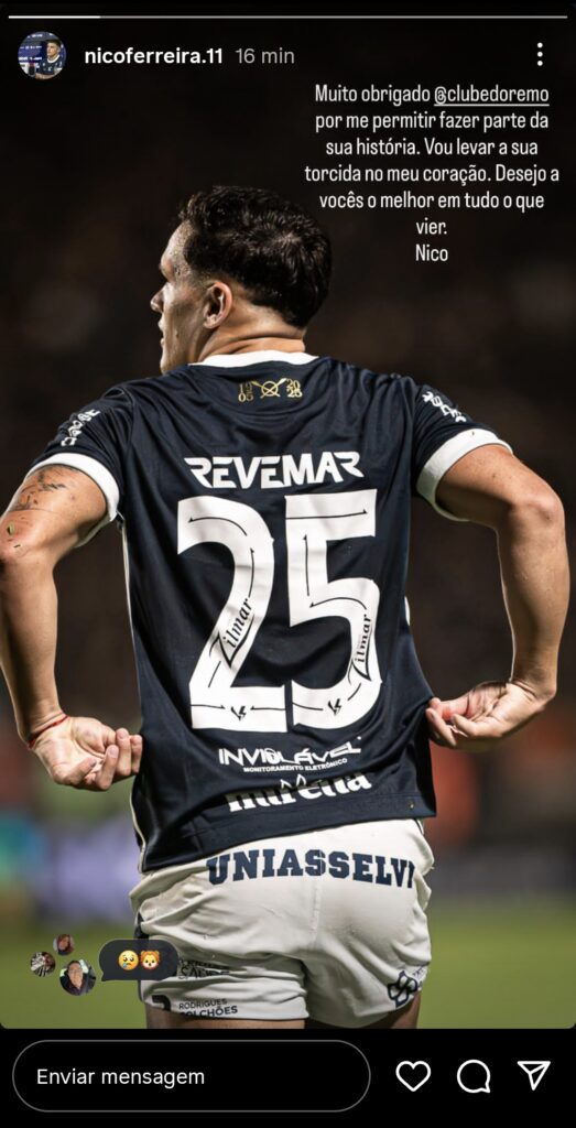 Na publicação feita nesse domingo, 26, Nico Ferreira foi direito ao falar sobre a saída do Remo. O atacante agradeceu por “fazer parte” da história azulina e disse levar o Fenômeno Azul no coração.