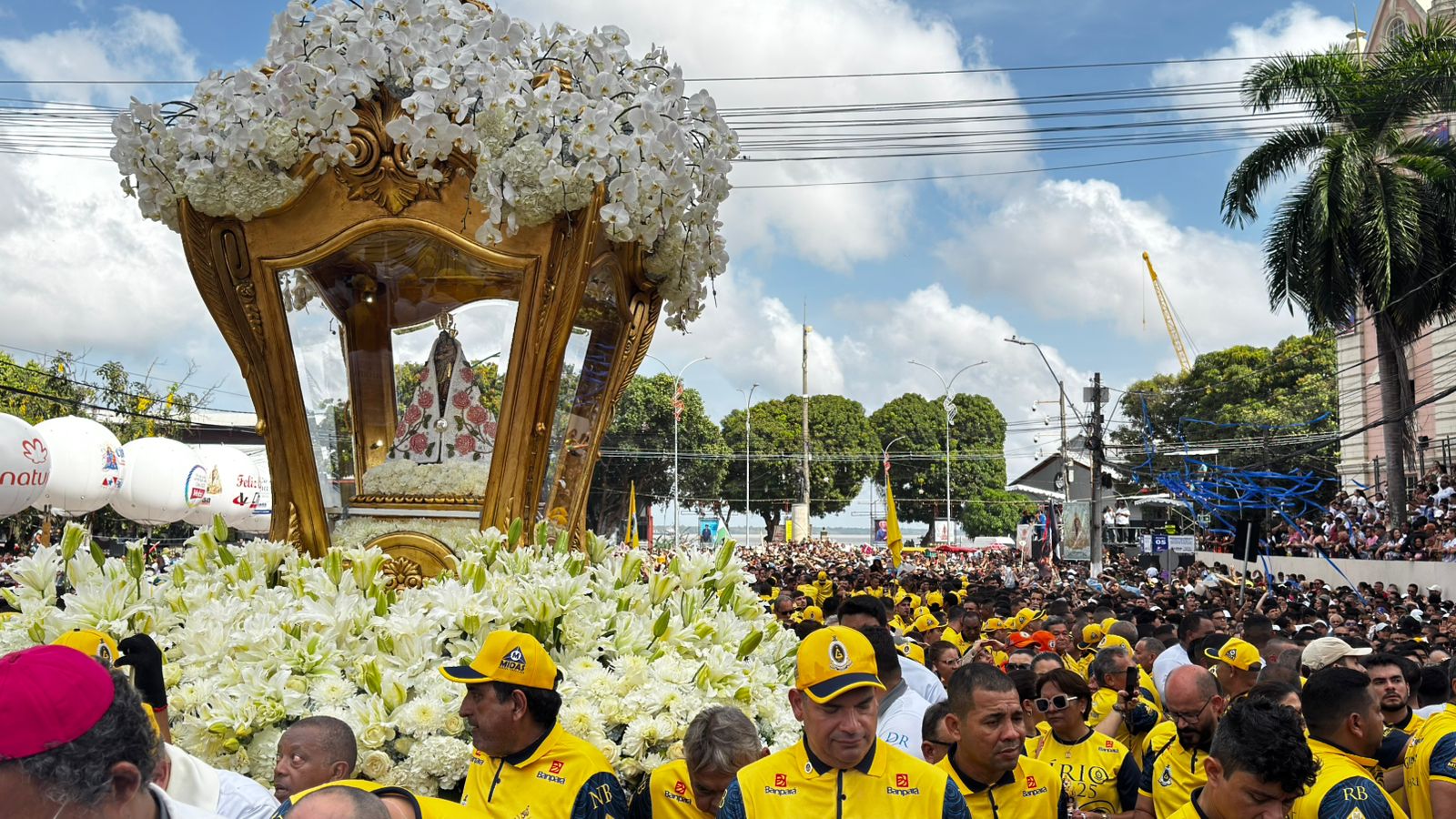 O domingo amanhece em clima de fé e emoção. Neste momento, fiéis participam da missa na frente da Catedral Metropolitana de Belém, ou simplesmente Catedral da Sé, que antecede o ponto mais esperado do Círio de Nazaré. Às 7h, a Imagem Peregrina volta às ruas, dando início à grande procissão que leva milhões de devotos a acompanharem Nossa Senhora até a Basílica Santuário. Um mar de fé toma conta da cidade, celebrando o amor, a tradição e a devoção do povo paraense. 💛✨