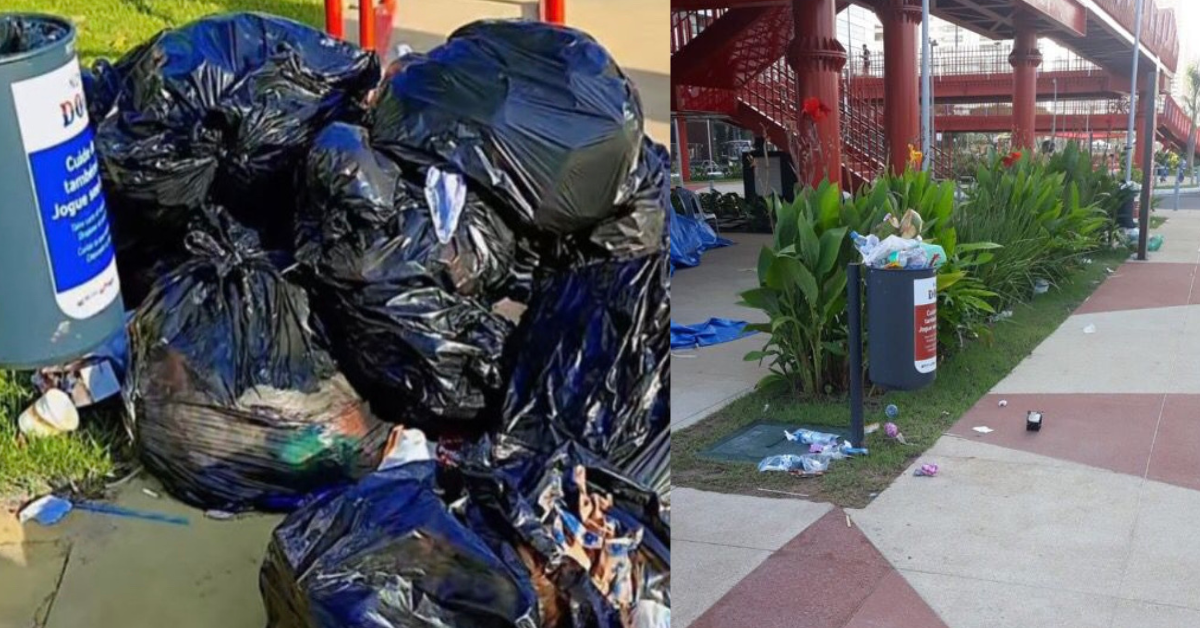 Inaugurado há apenas três dias, o Parque Linear da Nova Doca, em Belém, já enfrenta um problema preocupante: o descarte irregular de lixo. Imagens divulgadas nas redes sociais mostram resíduos espalhados pelo chão, mesmo com a presença de lixeiras em toda a extensão do novo espaço público.