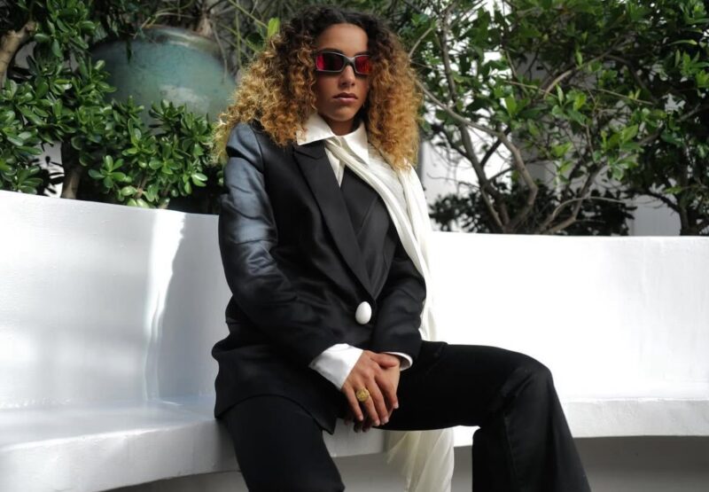 O look escolhido é composto por calça e blazer de alfaiataria em tom preto, combinados com camisa de gazar e lenço plissado na cor branca, unindo elegância clássica e identidade autoral. A produção chamou atenção pela sofisticação e pelo destaque dado à moda produzida fora do eixo tradicional do Sudeste.