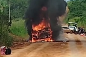 Ônibus pega fogo na BR-230 entre Placas e Uruará