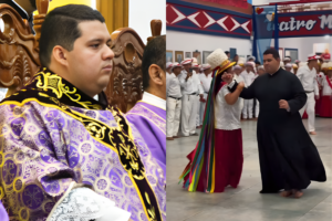 No domingo (21), durante o encerramento do período de danças da Marujada no Teatro Museu da Marujada, em Bragança, um momento ganhou destaque nas redes sociais e entre os moradores do município. O recém-ordenado Padre Daniel Brito participou da roda de dança, ao lado de marujos e marujas, em um gesto associado à valorização da … Continue lendo Padre dança na Marujada e reafirma vínculo com a cultura de Bragança