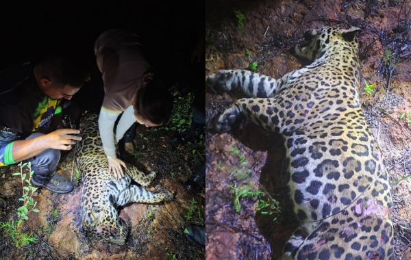 Uma onça-pintada foi encontrada morta após ser atropelada na madrugada desta quarta-feira (24), às margens da BR-163, no ...