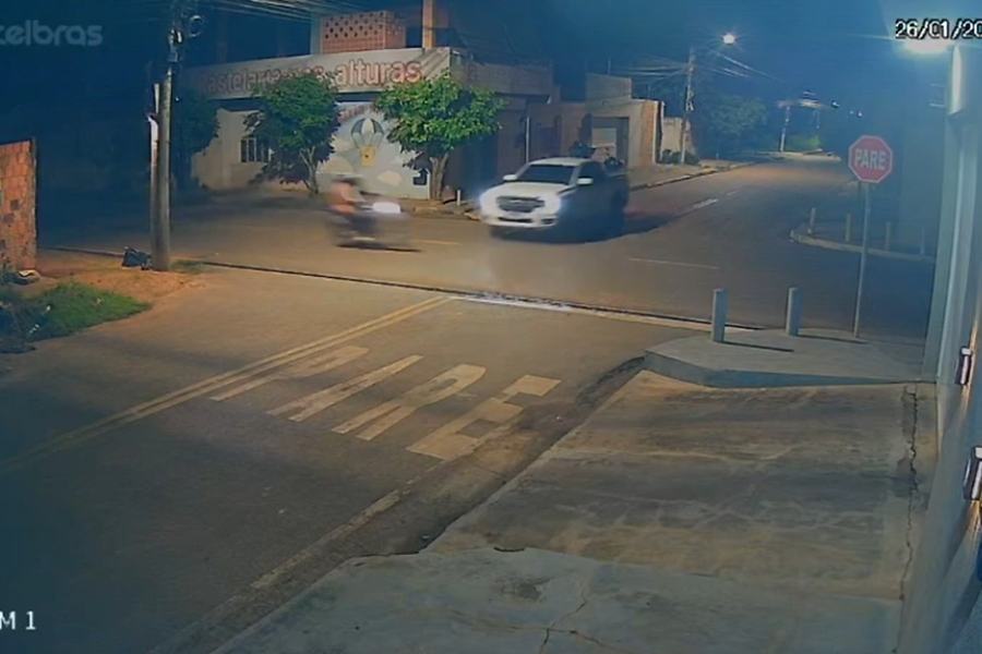 Uma caminhonete avançou a preferencial e colidiu com uma motocicleta no cruzamento da Avenida Dois Mil com a ...