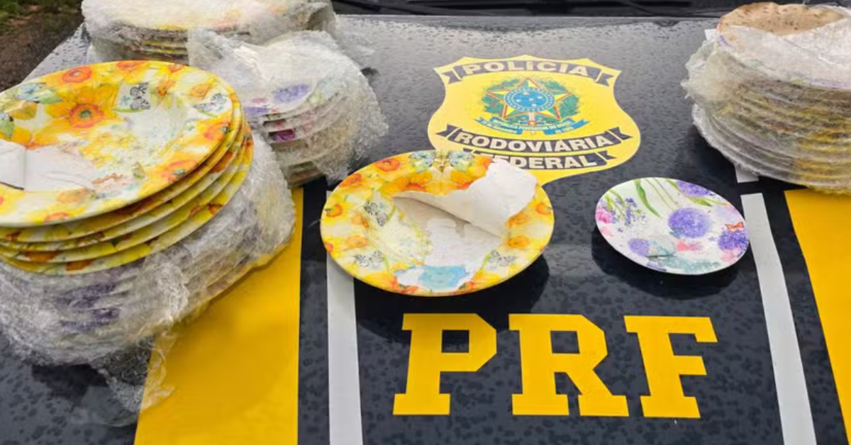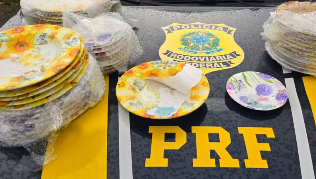 A Polícia Rodoviária Federal (PRF) apreendeu 15,4 quilos de cocaína moldada em formato de pratos durante uma fiscalização ...