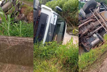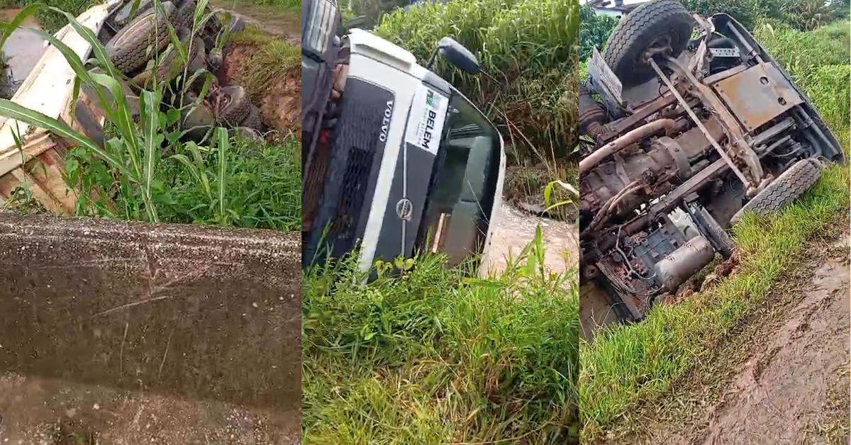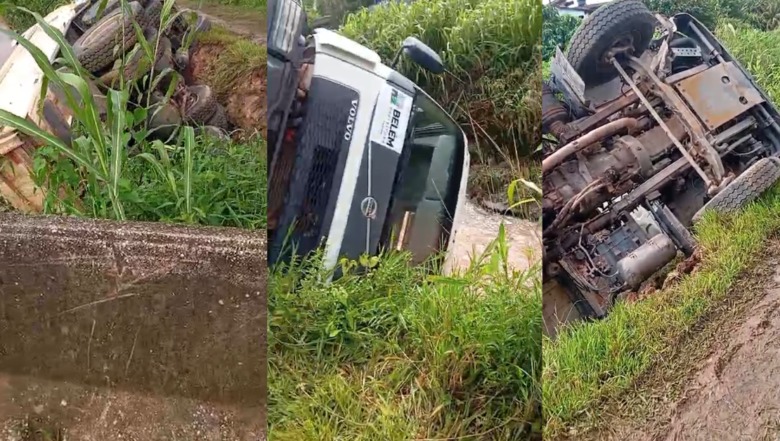 Caminhão da Prefeitura de Belém tomba em canal de Icoaraci