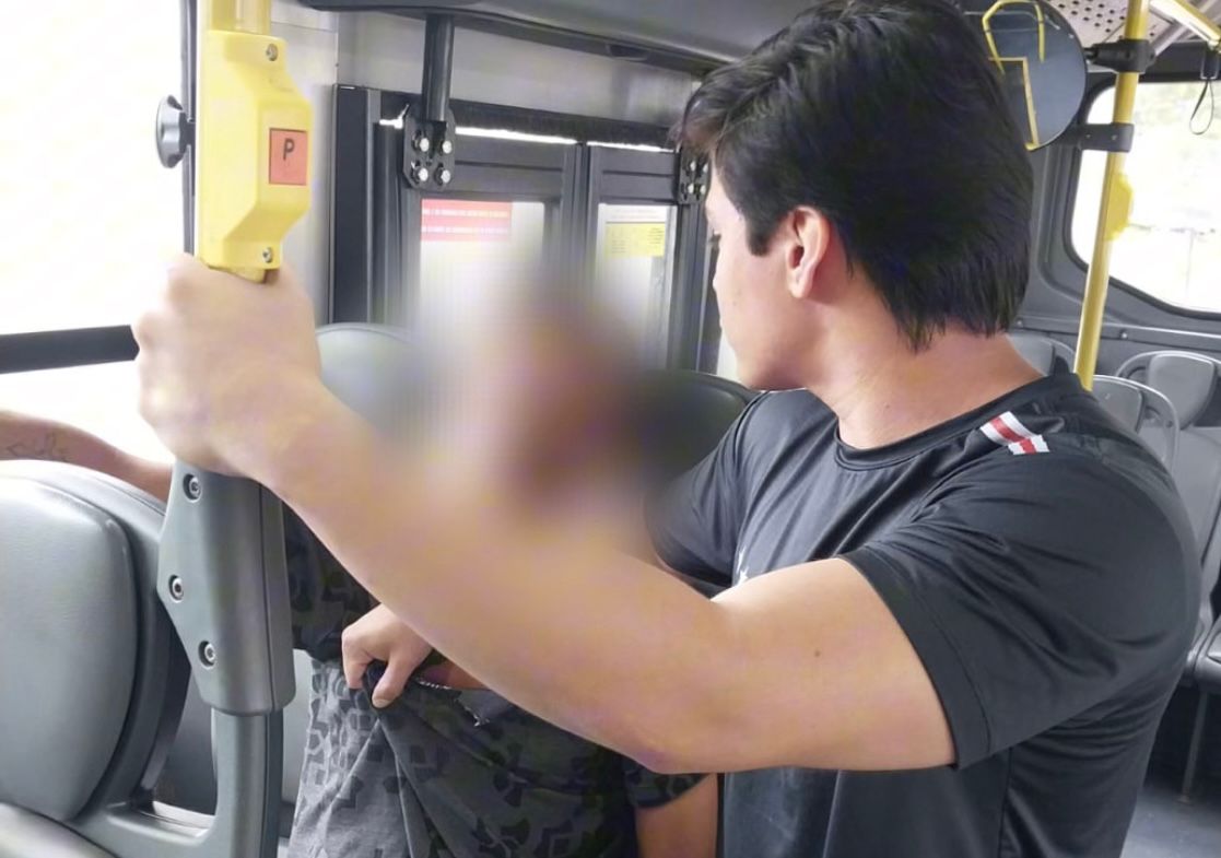 “Ele subiu já alterado, falava coisas para a moça e esticava a mão para tentar pegar nela. Quando o ônibus chegou na Ricardo Borges, ele começou a baixar a bermuda e tentou encostar nela. Foi quando eu me levantei e empurrei ele”, contou João Vitor.