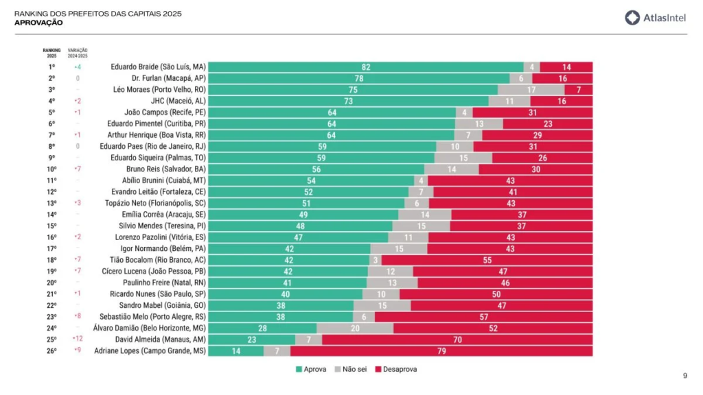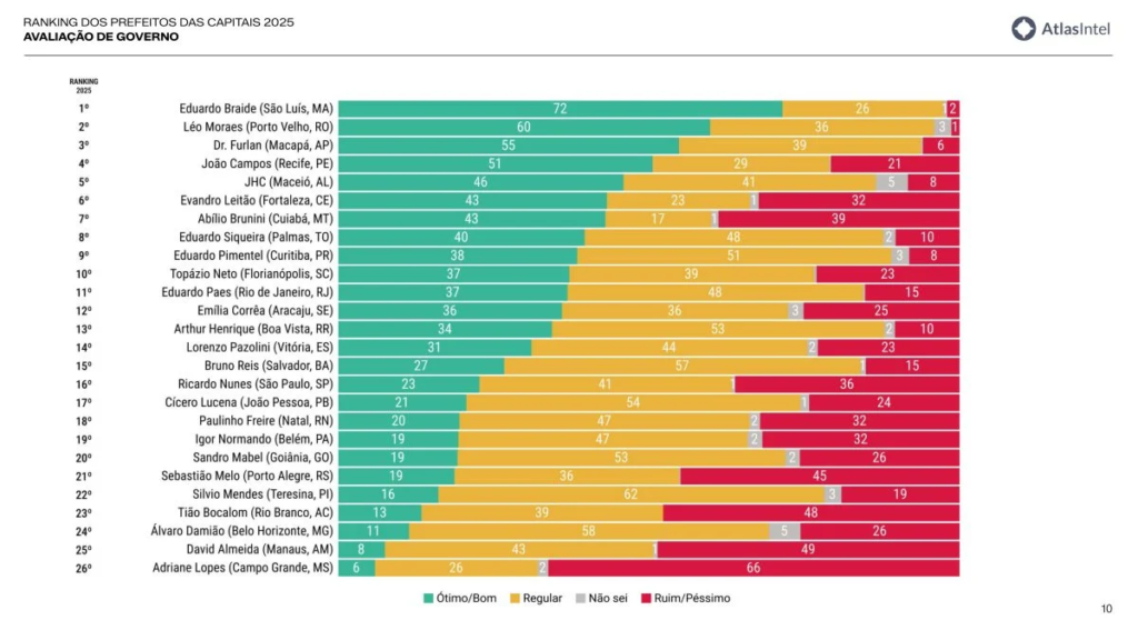 Uma pesquisa de abrangência nacional divulgada pelo Instituto AtlasIntel aponta um cenário desfavorável para o prefeito de Belém, Igor Nomando (MDB). O estudo, que avaliou a percepção da população sobre as administrações das capitais brasileiras, posiciona o gestor belenense apenas na 17ª colocação no ranking geral de aprovação entre 26 prefeitos. Quando a análise se volta especificamente para a avaliação da gestão municipal, Belém cai ainda mais, ocupando o 19º lugar.