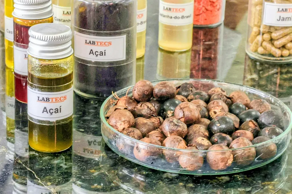 Pesquisadores do Laboratório de Tecnologia Supercrítica (Labtecs), da Universidade Federal do Pará (UFPA), sediado no Parque de Ciência e Tecnologia (PCT) Guamá, em Belém, desenvolveram um azeite extraído da polpa do açaí. A pesquisa utiliza tecnologia limpa e inovadora, que garante um produto de alta pureza, livre de solventes químicos e com preservação dos compostos bioativos da fruta.