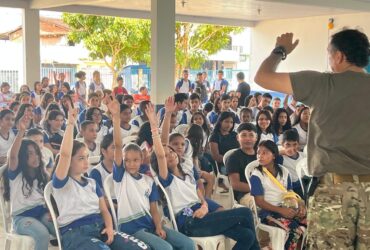 Equipes da Polícia Federal realizaram, na última quinta-feira (14, uma visita aos alunos da E.M.E.F. Professora Mariana das Graças da Silva Aguiar, localizada na cidade de Capitão Poço/PA, após a destruição de mais 120 mil pés de maconha na região. O objetivo foi mostrar o desenvolvimento dos trabalhos na cidade e alertar sobre os riscos do plantio ilegal da erva. Estavam presentes … Continue lendo PF realiza roda de conversa sobre riscos de plantio ilegal de maconha em Capitão Poço