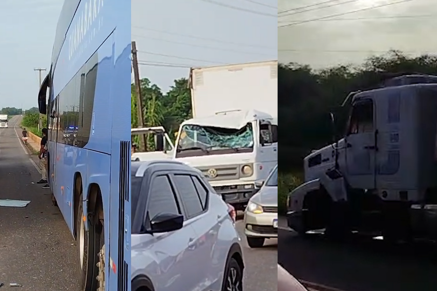 Um pneu de carreta se desprendeu do eixo e atingiu diversos veículos, incluindo um ônibus, na manhã na BR-316, no trecho próximo à Vila do Jeju, no município de Santa Maria do Pará, nordeste do estado.
