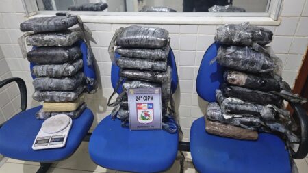 A Polícia Militar (PM) apreendeu aproximadamente 25 quilos de entorpecentes, na madrugada da última terça-feira (28), durante uma ação de patrulhamento na BR-230, em Cajazeiras, distrito de Marabá, região sudeste do estado. De acordo com a PM, a guarnição realizava rondas por volta das 3h30 quando avistou um veículo Fiat Strada, de cor branca, trafegando … Continue lendo Polícia Militar apreende cerca de 25 kg de maconha em abordagem na BR-230, em Marabá, sudeste do Pará