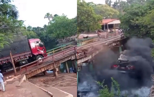 Em um vídeo, registrado por moradores, é possível ver o momento em que o condutor tenta alinhar o caminhão para atravessar a ponte de madeira. Mesmo sendo alertado, o motorista decide continuar a manobra. No entanto, a ponte desaba e o veículo cai no rio.