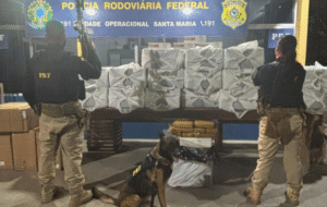 A Polícia Rodoviária Federal (PRF) realizou, na noite desta quinta-feira (28), a apreensão de 10 kg de cocaína e 20 mil maços de cigarros contrabandeados em um ônibus de viagem que seguia de Belém/PA com destino a Fortaleza/CE. A abordagem ocorreu no quilômetro 102 da BR-316, em Santa Maria do Pará. Durante a fiscalização, os … Continue lendo PRF apreende 10 kg de cocaína e 20 mil maços de cigarros em ônibus no Pará